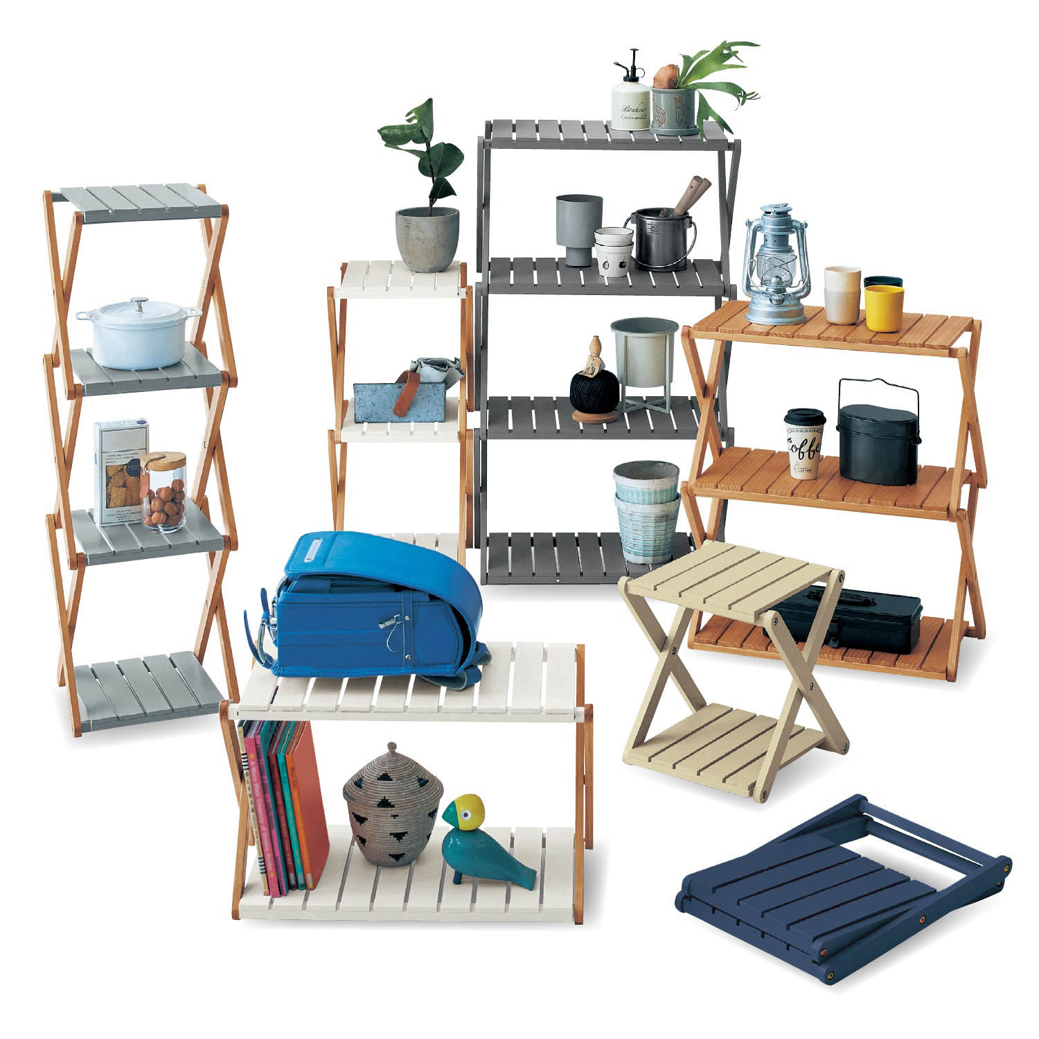 今日は、家の中で使えるのはもちろん、ピクニックやキャンプなど屋外でも活躍するフレキシブルな折りたたみラックをご紹介したいと思います。ベルメゾンから販売されているオリジナル商品「簡単に折りたためるラック 【選べる5色6サイズ】」です。